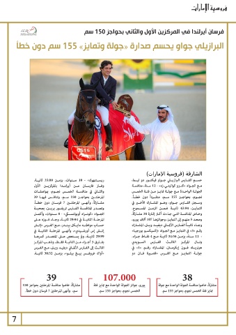 سم ،وأنهى المرحلتين 7فرسان دون خطأ. الخمس نجوم ،بحواجز 155سم. تمايز فئة الخمس نجوم ،بحواجز 155سم.