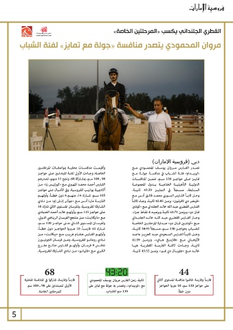 90ـ 100سـم ،بمشـاركة ،68ونجح 11منهم ،تصدرهم تصــدر الفــارس مــروان يوســف المحمــودي مــع