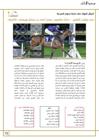 الثاني400.000 : الجواد« :دارك سافرون» دبي جولدن شاهين