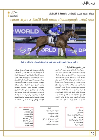 صعوبـة الأرضيـة العشـبية التـي تأثرت بهطـول الأمطار حســم الجــواد الإمــاراتي «أومبودســان» لجودلفــن،