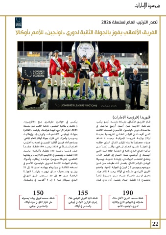 وسـويسرا ،وأميركا ،التي فازت بجولة أوكالا العام الماضي. منافســات دوري «لونجــن» للأمــم في نســخته الثالثــة