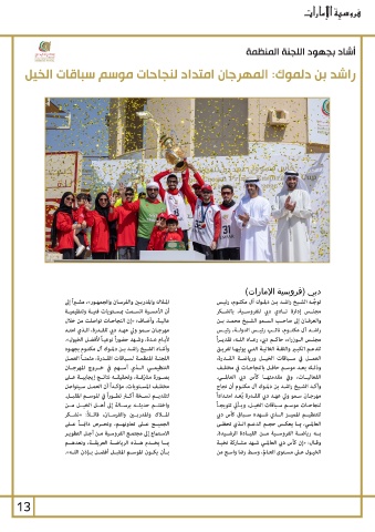 لأيـام عـدة ،وشـهد حضوراً نوعيـاً لأفضـل الخيول». والعرفـان إلى صاحـب السـمو الشـيخ محمـد بـن