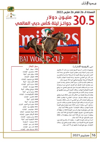 :1999المتوكل -الإمارات أعلـن نـادي دبي لسـباق الخيـل أن النسـخة السادسـة والعشريـن