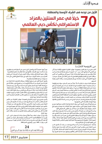 مسـتويات سـياحية واقتصاديـة وتجاريـة». سـباقات الخيـل في العـالم ،والمتوقـع انعقـاده في 24مـارس 2022عـى مضـار «ميـدان»،