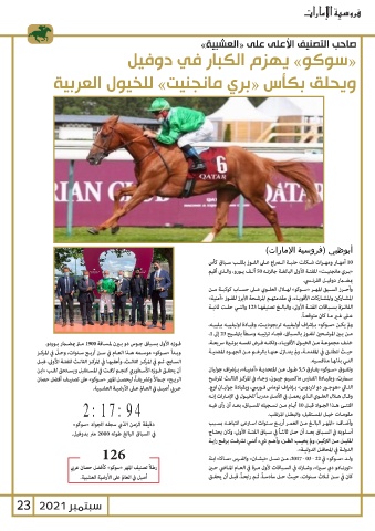 دقيقة الزمن الذي سجله الجواد «سوكو» عـى غـر مـا كان متوقعـاً.