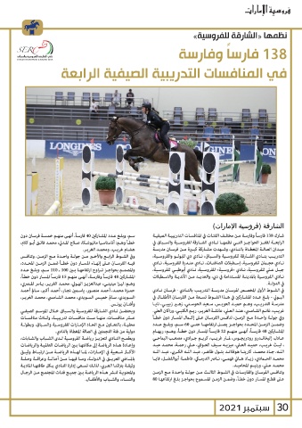 محليـة ،بالتعـاون مـع اتحـاد الإمـارات للفروسـية والسـباق ،وبطولـة وفي جولـة واحـدة مـع الزمـن ،تنافـس الفرسـان عـى إكـال المسـار دون خطـأ