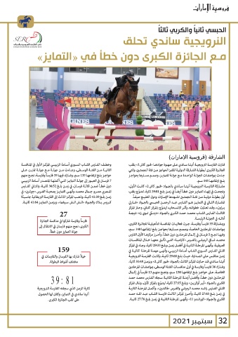 159 وبمشـاركة 35فارسـاً وفارسـة ،جـرت فعاليـات المنافسـة التأهيليـة للجائـزة الكبرى،