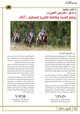 لتصبــح صــدارة القــدرة العالميــة وكل الكــؤوس العالميــة في إسـطبلات « »M7بـإشراف المـدرب الشـاب محمـد السـبوسي ،بسـطت