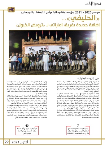 مشـاركة 7فرسـان وفارسـات مواطنـن مـن نـادي الحليفـي للفروسـية شـهد برنامـج موسـم الدريسـاج المـاضي 2021 - 2020الـذي نفـذه اتحـاد