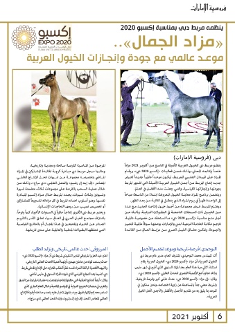 وثانيهماالأهميةالبالغةللمزادنفسهنظراًللطلبالمتزايدعلىالإنتاجالمحليلمربط للخيول العربية ،أن مزاد «إكسبو 2020دبي» للخيول العربية يقام