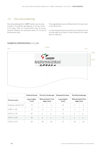 Size and positioning of the UAEERF Identity must be kept If the page format is not one of those listed in the table, work