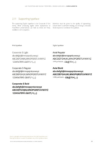 The supporting English typeface is the Corporate S font Attention must be given to the quality of typesetting.