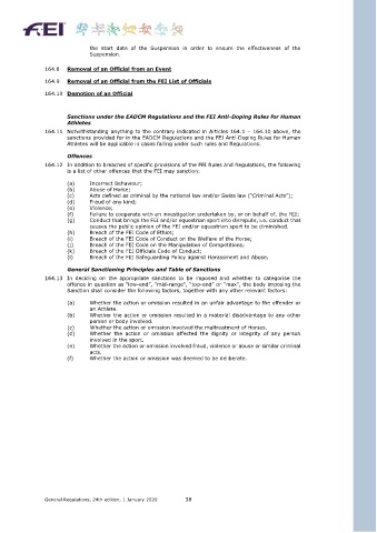 164.12 In addition to breaches of specific provisions of the FEI Rules and Regulations, the following