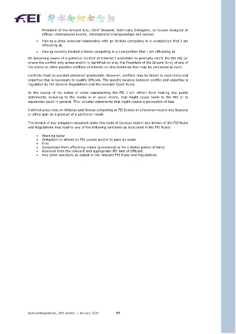 and Regulations may lead to any of the following sanctions as stipulated in the FEI Rules: