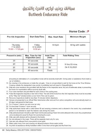 Pre-ride Inspection Start Date/Time Max. Heart Rate Horse Code : P