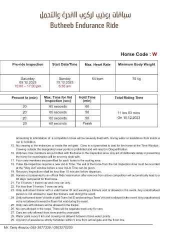 Pre-ride Inspection Start Date/Time Max. Heart Rate Horse Code : W