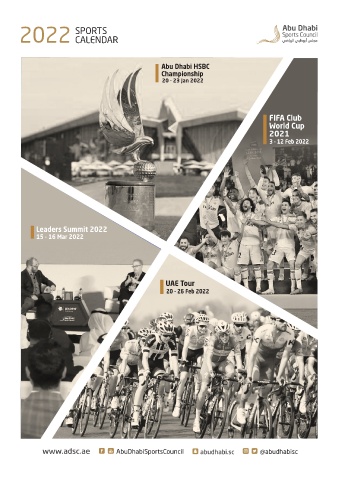 SPORTS 2022 CALENDAR Abu Dhabi HSBC Championship 20 - 23 Jan 2022 FIFA Club World Cup 2021 3 - 12 Feb 2022 Leaders Summit 2022 15 - 16 Mar 2022 UAE Tour 20 - 26 Feb 2022