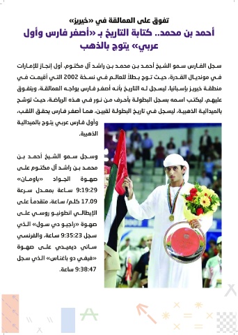 ﺳـﺠﻞ ﺍﻟﻔـﺎﺭﺱ ﺳـﻤﻮ ﺍﻟﺸـﻴﺦ ﺃﺣﻤـﺪ ﺑـﻦ ﻣﺤﻤـﺪ ﺑـﻦ ﺭﺍﺷـﺪ ﺁﻝ ﻣﻜﺘـﻮﻡ ،ﺃﻭﻝ ﺇﻧﺠـﺎﺯ ﻟﻺﻣـﺎﺭﺍﺕ