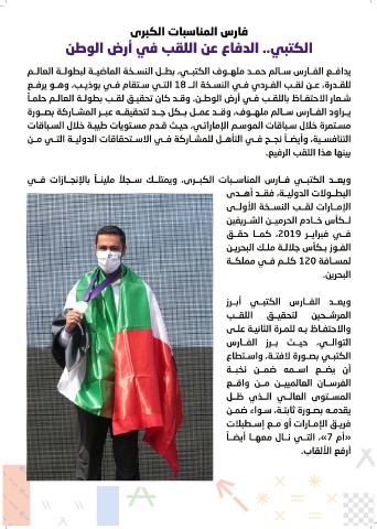 ﻳﺪﺍﻓــﻊ ﺍﻟﻔــﺎﺭﺱ ﺳــﺎﻟﻢ ﺣﻤــﺪ ﻣﻠﻬــﻮﻑ ﺍﻟﻜﺘﺒــﻲ ،ﺑﻄــﻞ ﺍﻟﻨﺴــﺨﺔ ﺍﻟﻤﺎﺿﻴــﺔ ﻟﺒﻄﻮﻟــﺔ ﺍﻟﻌﺎﻟــﻢ