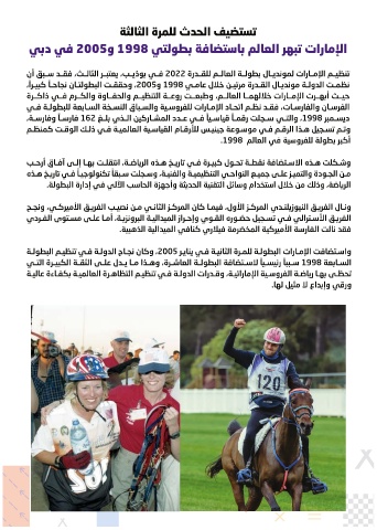 ﺗﺤﻈـﻰ ﺑﻬـﺎ ﺭﻳﺎﺿـﺔ ﺍﻟﻔﺮﻭﺳـﻴﺔ ﺍﻹﻣﺎﺭﺍﺗﻴـﺔ ،ﻭﻗـﺪﺭﺍﺕ ﺍﻟﺪﻭﻟـﺔ ﻓـﻲ ﺗﻨﻈﻴـﻢ ﺍﻟﺘﻈﺎﻫـﺮﺓ ﺍﻟﻌﺎﻟﻤﻴـﺔ ﺑﻜﻔـﺎءﺓ ﻋﺎﻟﻴـﺔ
