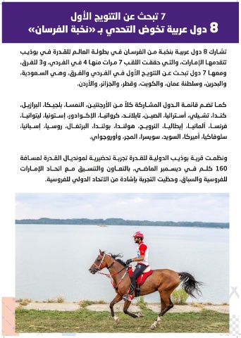 ﺗﺸـﺎﺭﻙ 8ﺩﻭﻝ ﻋﺮﺑﻴـﺔ ﺑﻨﺨﺒـﺔ ﻣـﻦ ﺍﻟﻔﺮﺳـﺎﻥ ﻓـﻲ ﺑﻄﻮﻟـﺔ ﺍﻟﻌﺎﻟـﻢ ﻟﻠﻘـﺪﺭﺓ ﻓـﻲ ﺑﻮﺫﻳـﺐ