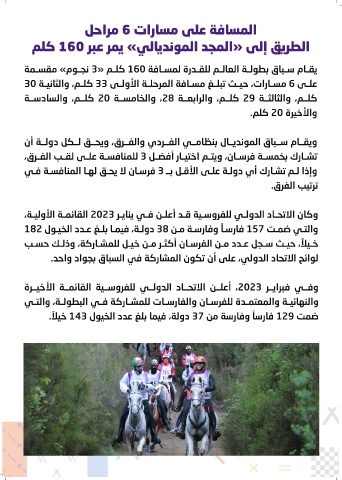 ﻭﺍﻟﺘـﻲ ﺿﻤـﺖ 157ﻓﺎﺭﺳـ ًﺎ ﻭﻓﺎﺭﺳـﺔ ﻣـﻦ 38ﺩﻭﻟـﺔ ،ﻓﻴﻤـﺎ ﺑﻠـﻎ ﻋـﺪﺩ ﺍﻟﺨﻴـﻮﻝ 182