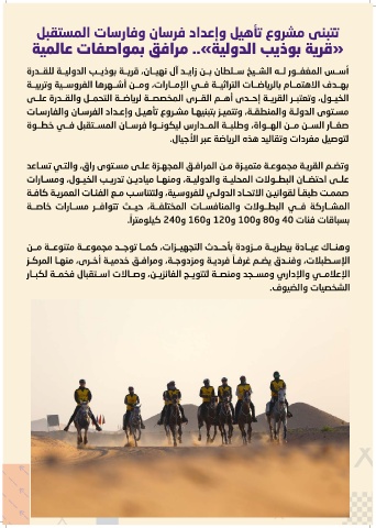 ﺑﻬــﺪﻑ ﺍﻻﻫﺘﻤــﺎﻡ ﺑﺎﻟﺮﻳﺎﺿــﺎﺕ ﺍﻟﺘﺮﺍﺛﻴــﺔ ﻓــﻲ ﺍﻹﻣــﺎﺭﺍﺕ ،ﻭﻣــﻦ ﺃﺷــﻬﺮﻫﺎ ﺍﻟﻔﺮﻭﺳــﻴﺔ ﻭﺗﺮﺑﻴــﺔ